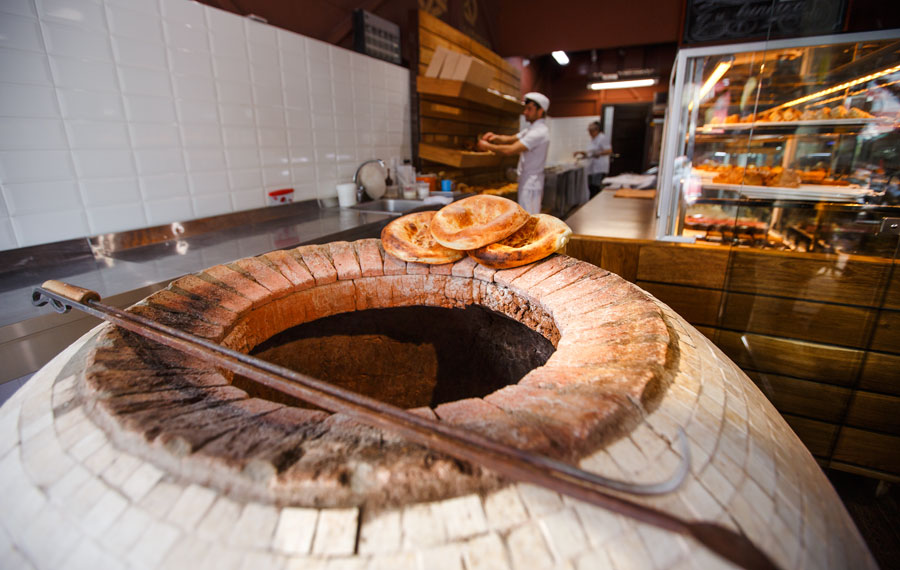 Our bakers use traditional cylindrical clay-lined Tandoor oven similar to the ones originally used by the nomadic tribes of Central Asia to bake bread and cook meat over open flames. The inner walls are heated to extremely high temperatures, often exceeding 900 degree F, and this intense heat produces the signature smoky flavors and delectable texture. The heat is regulated by the amount of oxygen that enters the oven pit, by opening or closing small vents at the bottom of the Tandoor. Be it naan bread or par-baked parathas that are fried afterwards, the use of a traditional Tandoor ensures that our end product is a perfectly baked bread with an ideal crusty finish.